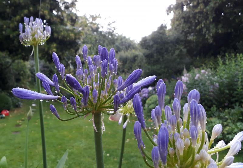 Jetzt zeigt sich auch bei uns die erste Agapanthusblüte.