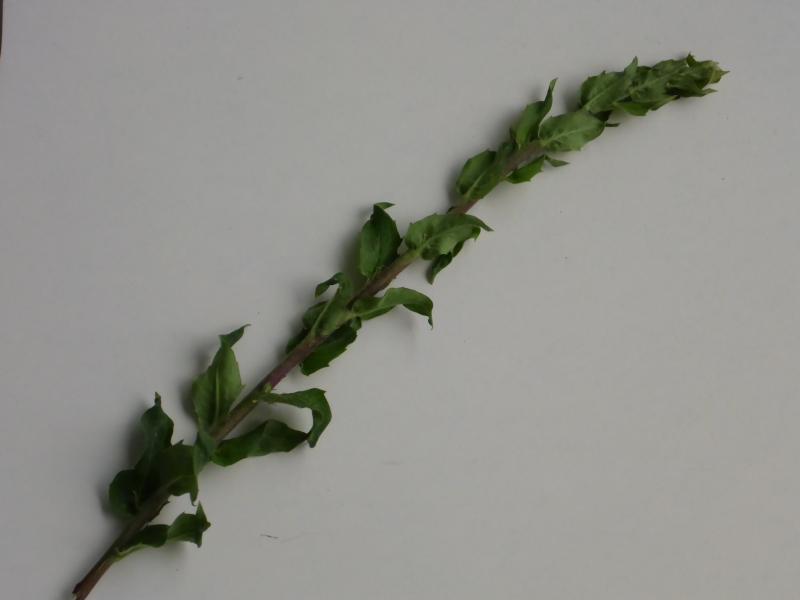 Blätter wechselständig, sitzend, entfergezähnt, ganz charakteristisch gedreht. ???