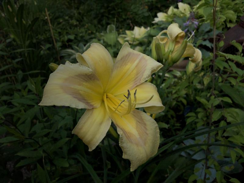 Mein unlängst gepostetes Foto vom Taglilien-Spezialisten, daß ich zur Farbdiskussion gezeigt hatte, stammt aus Pöchlarn - nördlich der Alpen gelegen, vollsonnige Pflanzung, kühler als hier, späterer Blühbeginn - Hochblüte in der ersten Julihälfte. Auch dort ist die Standfestigkeit 'verbesserungswürdig'. Hier südlich der Alpen in halbschattiger Pflanzung steht sie leider genauso wenig ;)