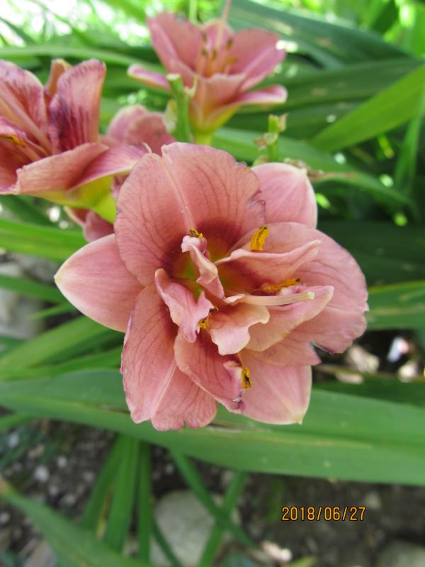 Hier habe ich die 'Kwanzo' inzwischen komplett aus dem Beet entfernt und trotzdem gibt es immer mal wieder eine Blüte, weil sich irgendwo noch ein Wurzelrest befand. Ursprünglich hatte meine Mutter sie bei einer Gartenreise aus England mitgebracht, weil sie sich angeblich von der 'Kwanzo' auf dem Festland unterscheiden soll in Bezug auf die Anzahl der Blütenblätter. In manchen Jahren war das tatsächlich so.