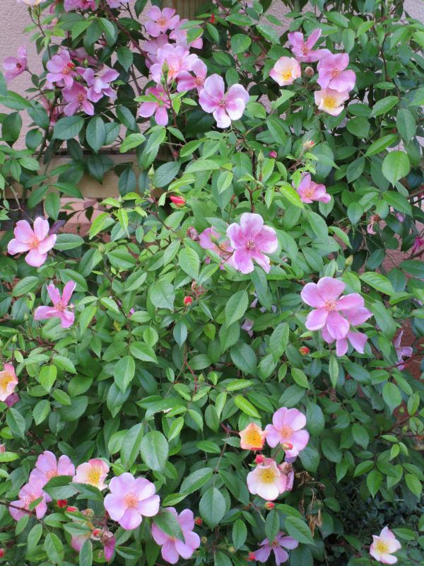 Hat bei uns ab Anfang Mai an der Hauswand geblüht und bringt jetzt wieder neue Blüten.