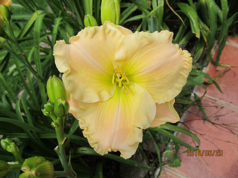 Die namenlose im Vorgarten wurde inzwischen als Tequila and Lime identifiziert - die Blütenöffnung ist auch bei kühlem Wetter passabel, aber bei weitem nicht so perfekt wie bei Wärme, dafür ist sie jetzt grüner:
