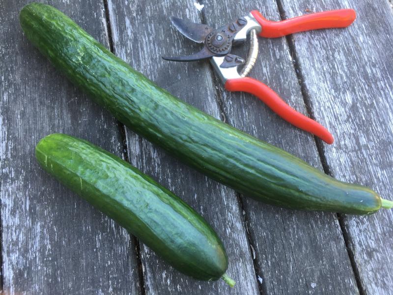 Die Gurken auf dem Bild (oben Domenica, unten Printo) sind für den Gurkensalat heute Abend bestimmt.