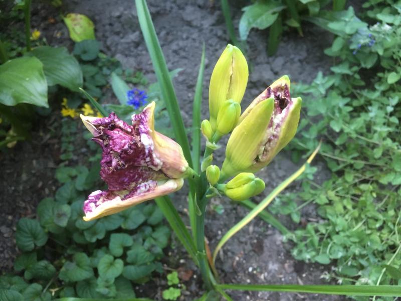Deine Taglilie ist mit der Hemerocallis Gallmücke befallen.Deren Larven fressen sich durch die hohlen Stengel und Blüten.[/quote]