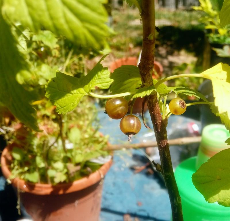 Also, den Ojeblanc, der von Ribanjou speziell für die Gartenkultur ausgelesen ist, habe ich vor 10 Tagen geerntet (dieses Jahr ist alles Obst früher reif): Seine Beeren schmecken hervorragend nach Cassis, sie zergehen geradezu im Mund und sind mild-würzig.