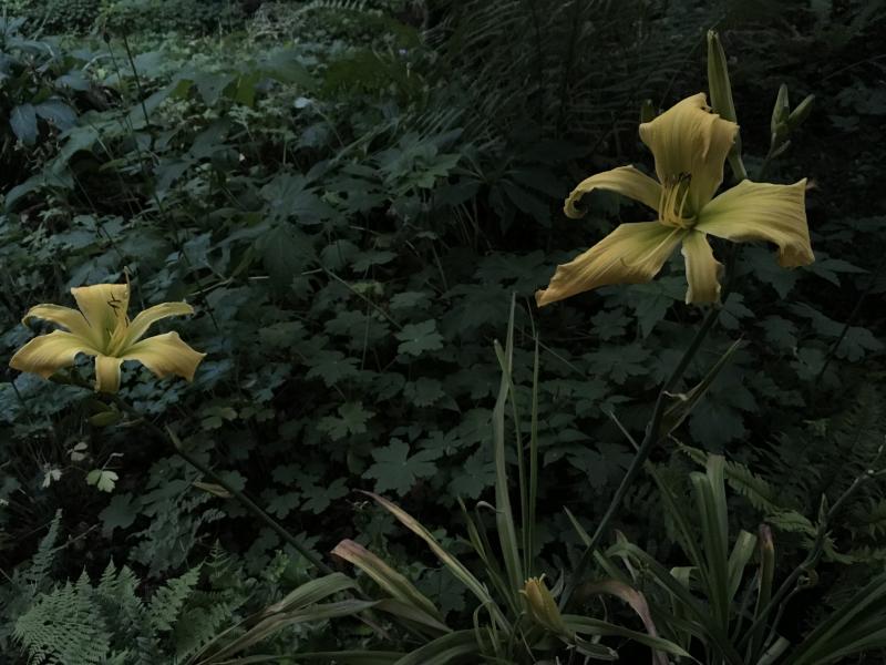 Farbvergleich H. fulva und H. fulva rosea - letztere hat größere Blüten und schmalere Blütenblätter, sie wird hier höher und blüht auch später: