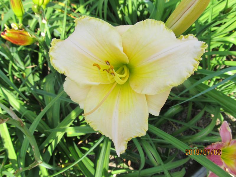Und zum Vergleich dazu eine späte rosa Sorte mit leichtem Rüschenrand - farblich deutlich schlechter (zumindest hier in meinem Garten): Marchioness