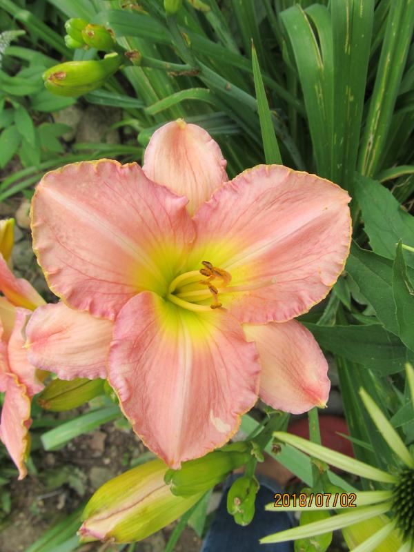 Und zum Vergleich dazu eine späte rosa Sorte mit leichtem Rüschenrand - farblich deutlich schlechter (zumindest hier in meinem Garten): Marchioness