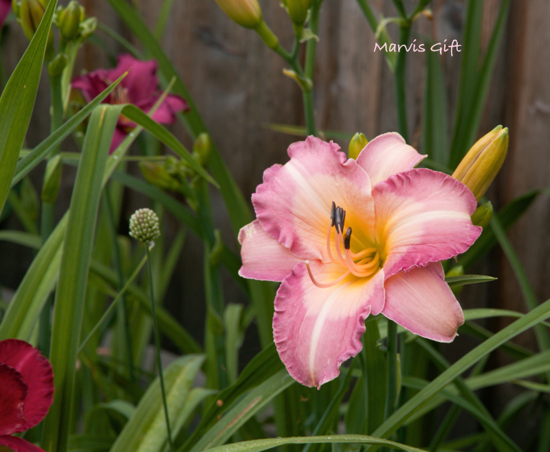 Hier noch etwas für mich eher unerwartetes: Tender Love (spät, großblütig, fast weiß mit rosa Rändern, altmodische Blütenform) und Fizziwig (fuchsiapink und weiß gestreift, lilienförmige Blüten) ergibt so etwas großblütiges spätes Ätherisches :D