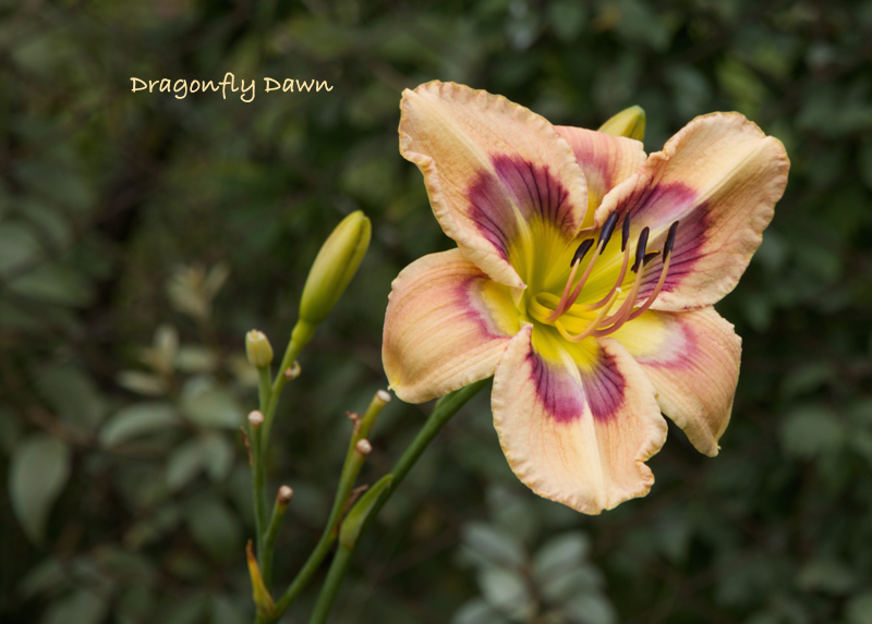 Als Vorgeschmack ein Sämling, der mich - wie so oft - wieder einmal über die Genetik von Taglilien staunen läßt. Gekreuzt hab ich die dunkelpinke riesige duftende Superrüsche Song Writer mit der schlichten gelben, etwas kleineren aber spät blühenden Sandra Elizabeth. Das Ergebnis ist kleinblütiger als beide Elternsorten, hat einen knallgrünen Schlund, ein leuchtend dunkeloranges Auge und eine hellorange Grundfarbe mit dunklerem gerüschtem 'Wire Edge' (feine Linie am Rand der Rüschen) - mit einer besseren Kamera sieht man das vielleicht auch, so kann man es mit Hilfe der Beschreibung erahnen: