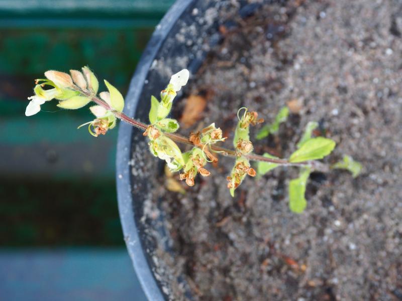 Ich hatte den heimischen Teucrium scorodonia zu T. hyrcanicum gesetzt, weil ich mir eine kleine Chance auf Hybriden erhofft hatte. Das wird vermutlich nichts. Beide Arten sind nicht sehr nahe verwandt.