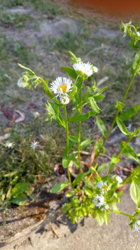 Wie sich die Bilder doch gleichen ;) Ende des letzten Jahrtausends habe ich, wahrscheinlich mit einer zugekauften Pelargonie, ein Exemplar eingeschleppt. Blühte zwar nicht sonderlich auffällig, aber reichlich und langanhaltend, wuchs gut und machte generell einen vitalen Eindruck – also aus dem Pelargonienkübel in den Garten umgesiedelt, noch ohne zu wissen, was es eigentlich ist. Schon im Folgejahr erschienen an verschiedenen Stellen im Garten, darunter auch einigen etwas vernachlässigten, größere Mengen an Sämlingen :P Seither werde ich das Zeug nicht mehr los, und hier auf meinem etwas schwereren Boden macht es schon als kleine Pflanze einen zwar nicht tief wurzelnden, aber enorm kompakten Wurzelstock, mit dem es seine Nachbarn unterdrückt und der ab einer bestimmten Größe nicht mehr „im Vorübergehen“ zu entfernen ist. Seit ich konsequent keine Aussamung mehr zulasse, nimmt die „Samenbank“ im Boden aber scheinbar langsam ab, und die beblätterten Blütenstengel eignen sich auch gut zum Mulchen der Gartenwege; zudem sind die Pflanzen das letzte Grünfutter für die Kaninchen, wenn dann im Dezember selbst der Giersch eingezogen hat. Also wenigstens noch ein klein wenig Nutzwert – trotzdem grundsätzlich: Nie wieder Erigeron annuus!