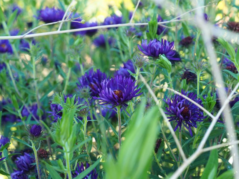 etwas früh, die Aster novae-angliae 'Büchter Nacht'.