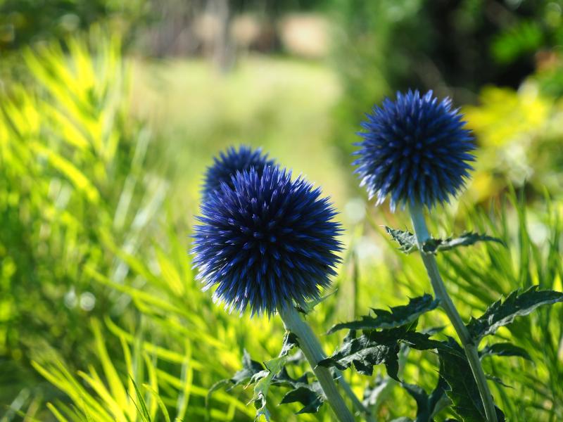 Echinops bannaticus näher. Das ist das blaueste Exemplar im Garten.