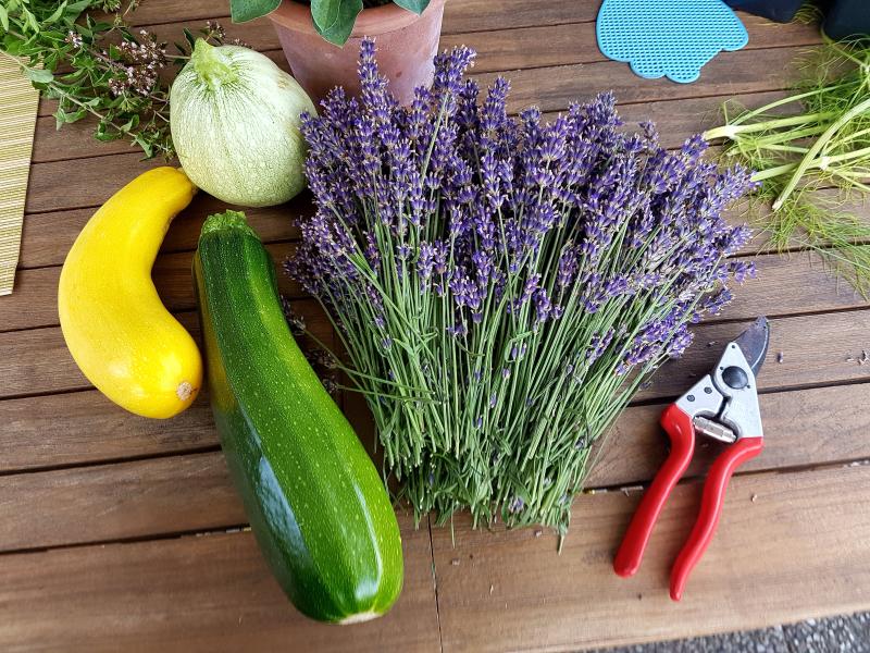 Lavendel zurück geschnitten und Sträusse daraus gemacht. Etwas Oregano und Fenchelgrün zum Trocknen.