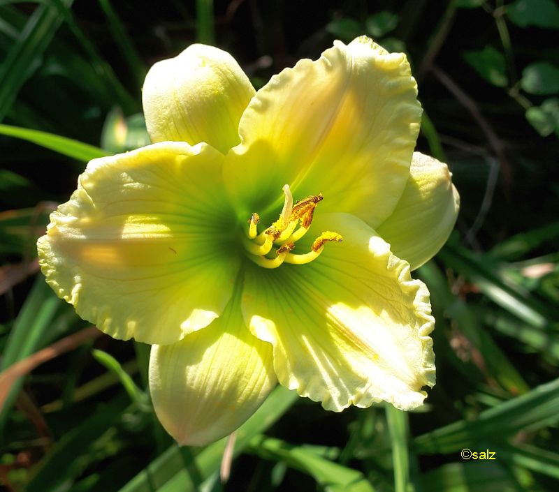 Forsyth White Buds blüht nun auch - sie gehört zu den wirklichen Spätblühern, auch wenn die Registrierung anders lautet. Leider ist sie in meinem Garten blühfaul - ein großer Horst und immer nur 1 oder 2 Stängel. Zum Kreuzen ist sie aber gut zu gebrauchen - den grünen Schlund vererbt sie mit den späten Genen: