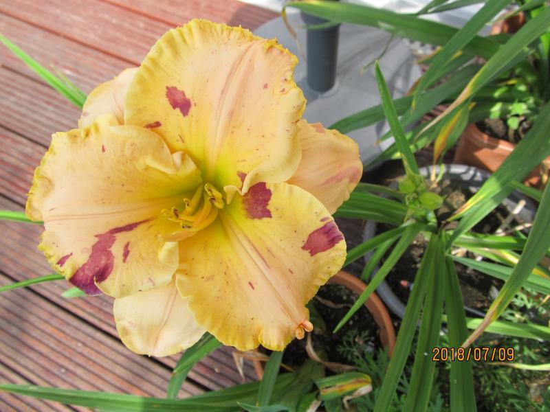 Es gibt aber auch eine andere Möglichkeit, lange und fleißig zu blühen - hier Stella's Ruffled Fingers, die seit 8.6. ununterbrochen blüht - sie schiebt laufend neue Blütenstängel nach (ich hoffe, die kann man am Foto erkennen - links von der Blüte):