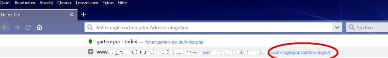 Der Fuchs hat, beflissen wie er ist, als Link zu dem Forum, mit dem ich diese Abmeldeorgie durchlitten habe, den Logout gespeichert.