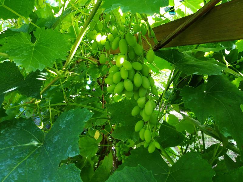 Der Geschmack lässt sich noch nicht beurteilen, bis zur Reife sind es sicher noch zwei Wochen, auch wenn die Trauben schon riesig sind.