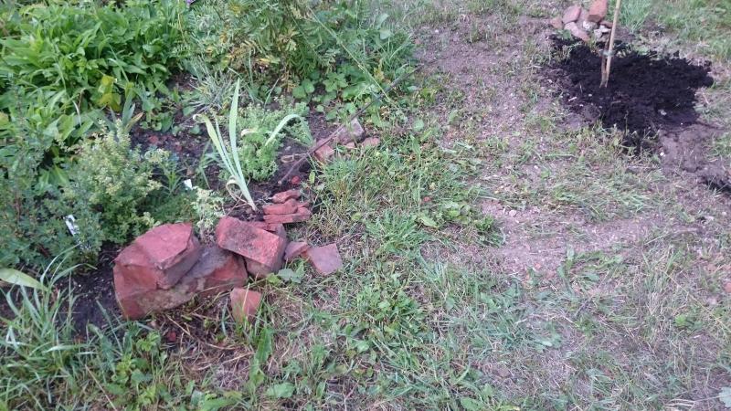 Gestern kam mein zweiter Spilling. Heute habe ich ihn gepflanzt. Das Ausheben des Pflanzlochs erwies sich als etwas "hüstel" herausfordernd. Immerhin dürften Wühlmäuse den Weg zum Bäumchen schlecht finden. 8)