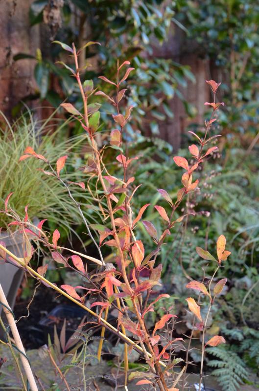 Neu hier, und noch immer schöne Laubfärbung: Berberis koehneana