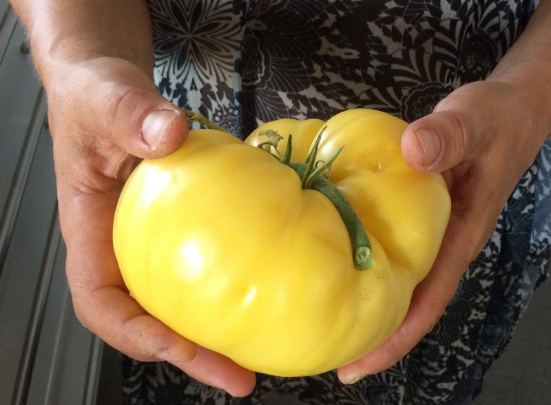 Ich konnte heute auch meine erste Fleischtomate ernten, eine Green Giant. Gewogen habe ich sie nicht, aber so 4-500 g wird sie gehabt haben. Ich lieeebe diese grünen Brummer, das Aroma ist einfach phantastisch!