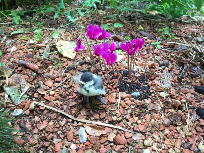 GG und ich hatten den Eindruck, dass sie es durch das dichte Clematislaub nicht mehr schafft und haben den Zugang etwas freigeschnibbelt.