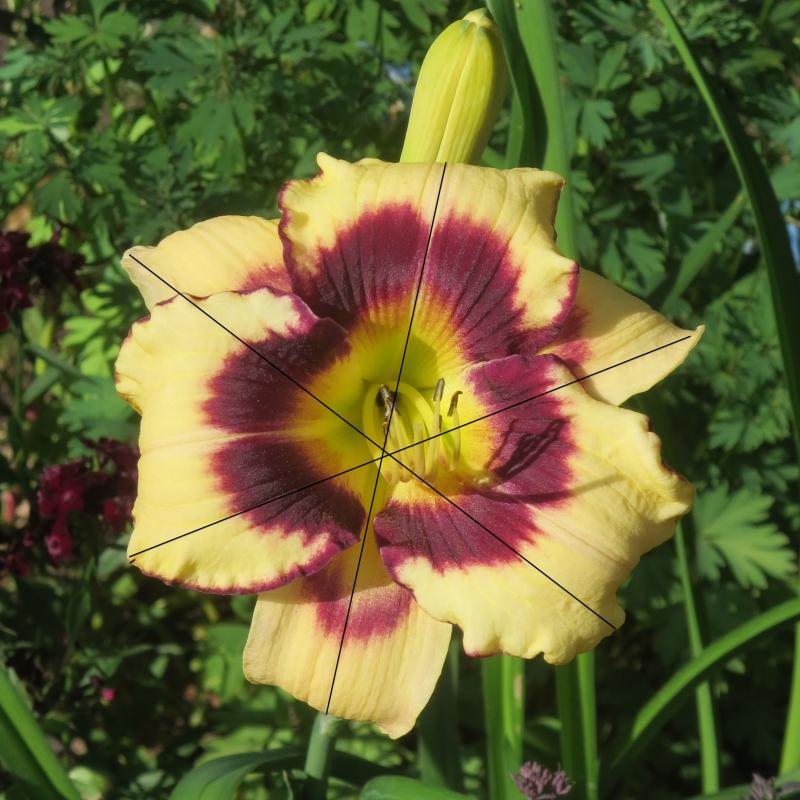 An der Blüte darf nichts verändert werden. Man nimmt den größtmöglichen Durchmesser.z.B. so. Man kann sich also die längste Strecke aussuchen.
