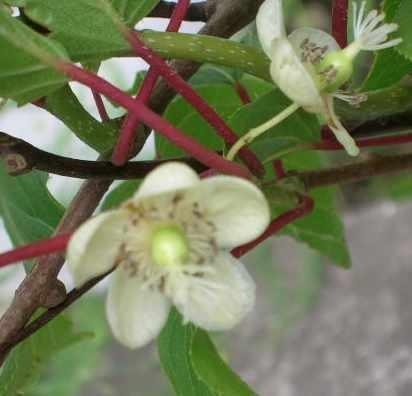 hallo bonica, diese issai ist im 3. Jahr. sie hat leider nur noch 2 weibl. blüten (oder zwittrige?), die reinen männchen waren vor ihnen da und sind leider schon abgefallen. deshalb ist es auch bei "selbstfruchtbaren" sicherer, mehrere pflanzen zu haben. ich habe die zwei weibchenblüten fotografiert - schärfer bring ich ´s nicht hin