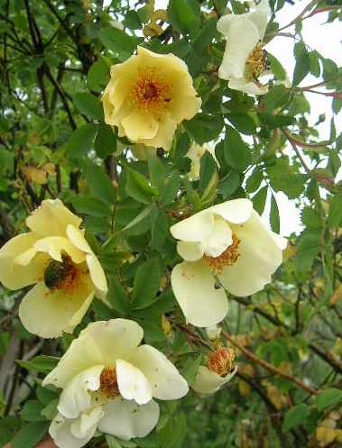 . Die daneben stehende R. gallica "Splendens" wird immer gelber und gelber....