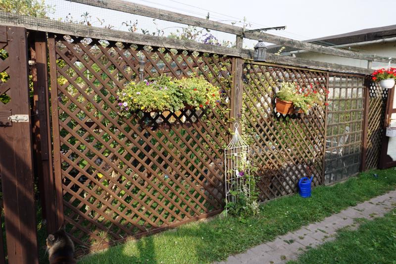 Eigentlich hatte ich die Mitte zw. den 2 Ranggittern für eine Rebe geplant.