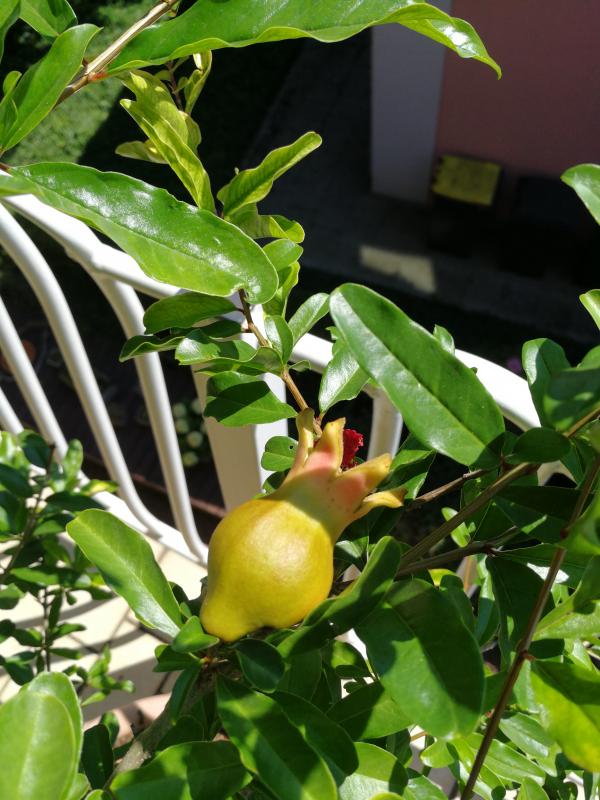 Ich hätte bei dem Granatapfelbaum von philippus aufgrund der gelben Blätter auch auf Wassermangel getippt. Oder hast du vielleicht mit zu viel Kalk gedüngt? Letztes Jahr habe ich im Kübel zu viel mit Cacinit gedüngt, und binnen einer Woche waren die Blätter und Früchte gelb.