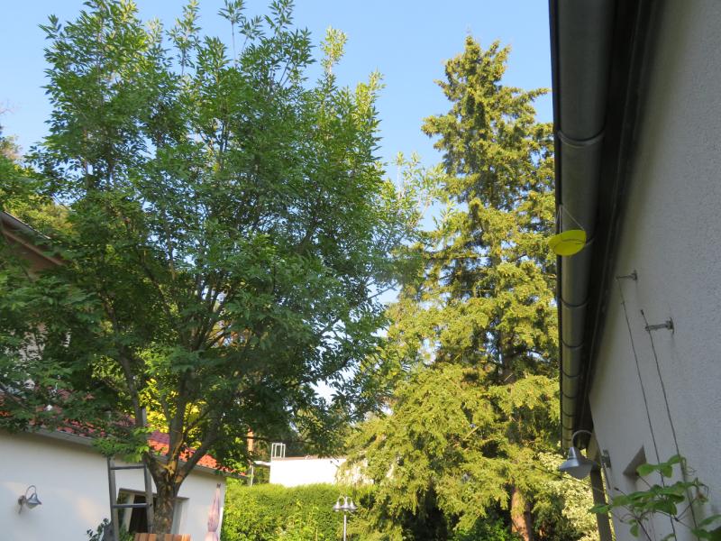 Die spanndene Frage nun: Wie lange hält der Effekt? Nun, heute morgen waren wieder Hornissen im Baum, wesentlich weniger als gestern jedoch. Und: Es waren einige Hornissen tatsächlich an der Zuckerschale, die noch im Baum hing, gestern aber komplett ignoriert wurde.