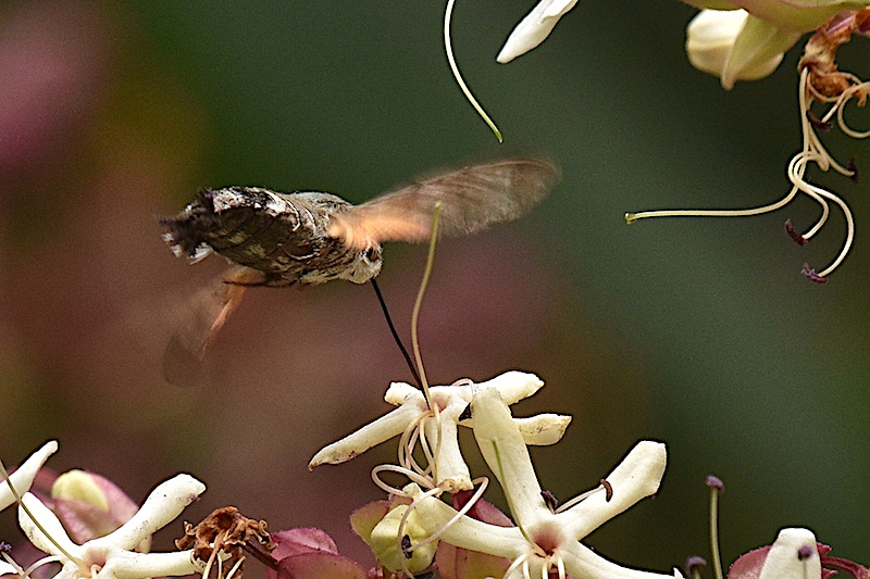 Ich habe gerade eben ein kolibriartiges Insekt gesehen,dass mit seinen langen Saugrüssel von Phloxblüte zu Phloxblüte flog.
