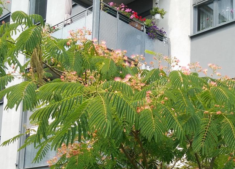 (PS: eine Albizie in einem Winzgarten in der Nachbarschaft wurde wieder gerodet, weil sie den Pool und die Terrasse extrem verschmutzt hat - wen das stört, der sollte sich keine zulegen)