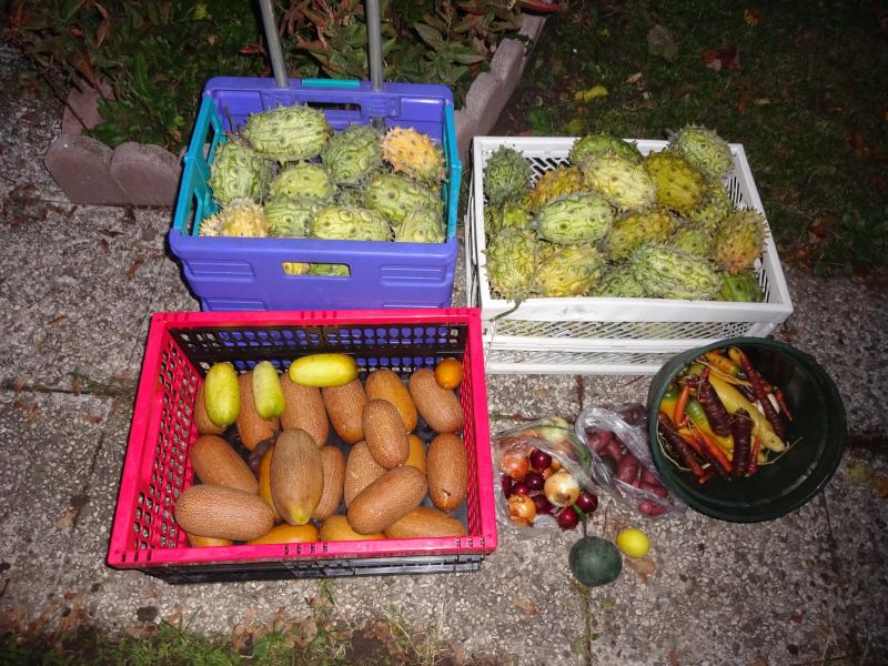 Caigua (meine urspruenglichen Samen waren glaub von Dir) tragen auch erst im spaeten Herbst