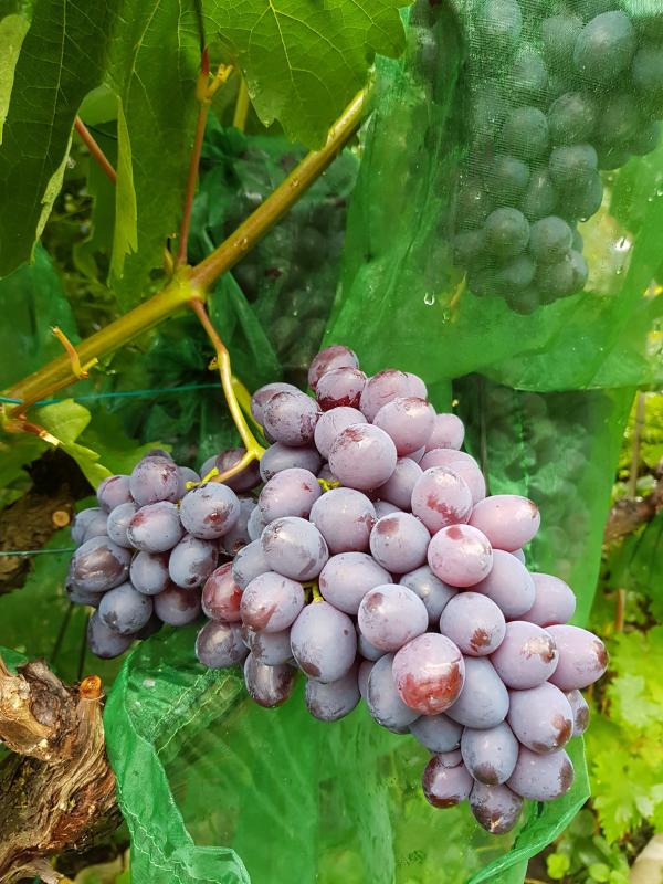 Wenn hätte ich beim Aloschenkin die Trauben nicht um 50% reduziert würden Sie kleinere Beeren haben und ca.2kg schwer. Jetzt hat größere Beeren und trotzdem Trauben sind über 1kg schwer.,süss mit 2 Kernen.