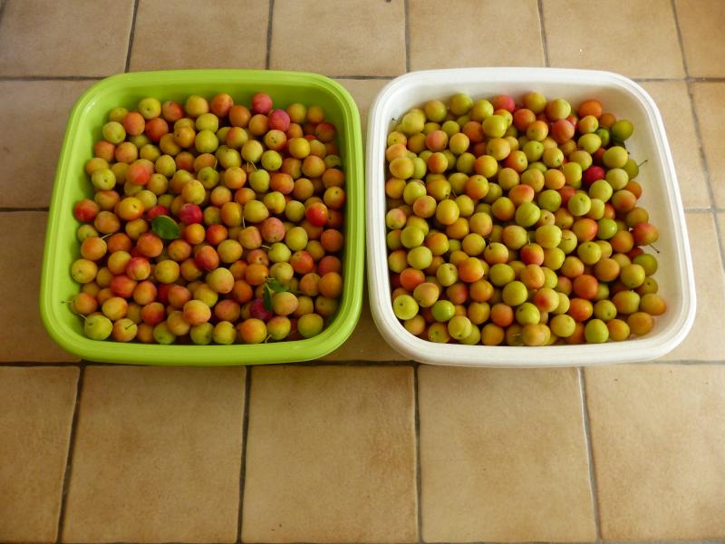 Es waren Früchte von der Nancymirabelle, die zum Teil noch nicht vollreif waren. Ich dachte, ein wenig Säure tut der Marmelade gut.