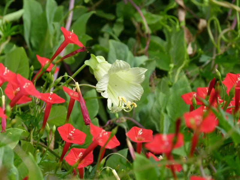 Bei mir vermischen sich die selbst aufgegangenen Prunkwinden mit der "Wucherpassiflora". Das mutiert alles langsam zum Unkraut.