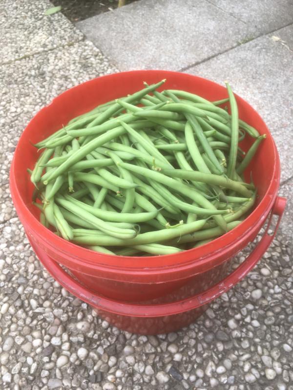 Ich habe heute eine Reihe mit Buschbohnen beerntet.