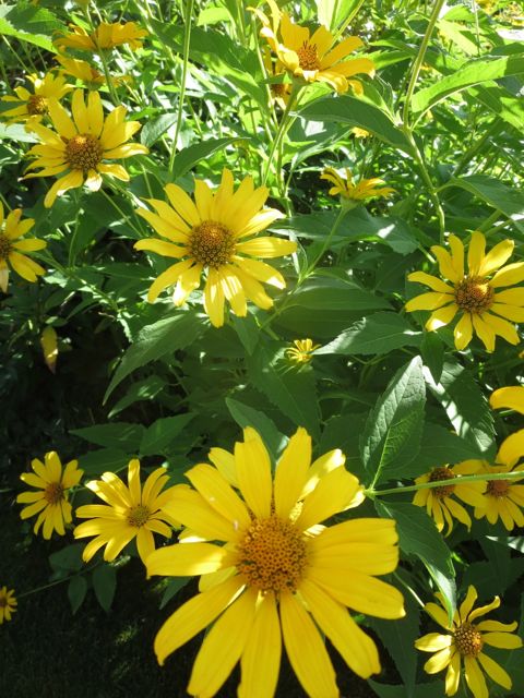 Genau. Heliopsis helianthoides in der gewöhnlichen Form. Die wird sehr oft für eine Sonnenblume gehalten. Aber schon dadurch, dass sie sich reichlich versamt, verrät sie sich. Das habe ich bei staudigen Sonnenblumen noch nicht erlebt. Es dürfte höchstens sehr selten vorkommen.