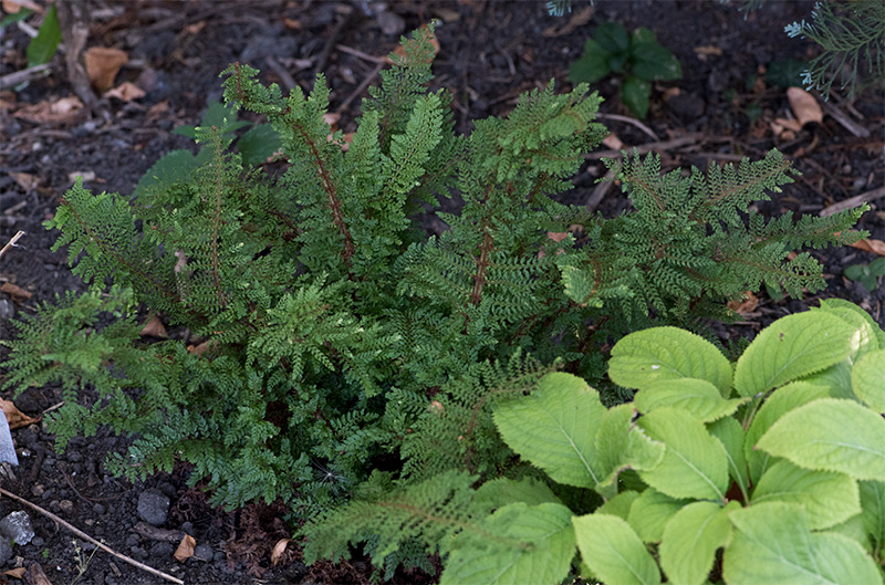 Diesen Sämling hätte ich ja gern im Garten, in dem viele Farn-Winter-Lücken sind. Der sitzt aber in einer Ritze im Beton, keine Chance, den da rauszubekommen. Regen kommt da keiner hin, keine Ahnung, wovon das Teil lebt.