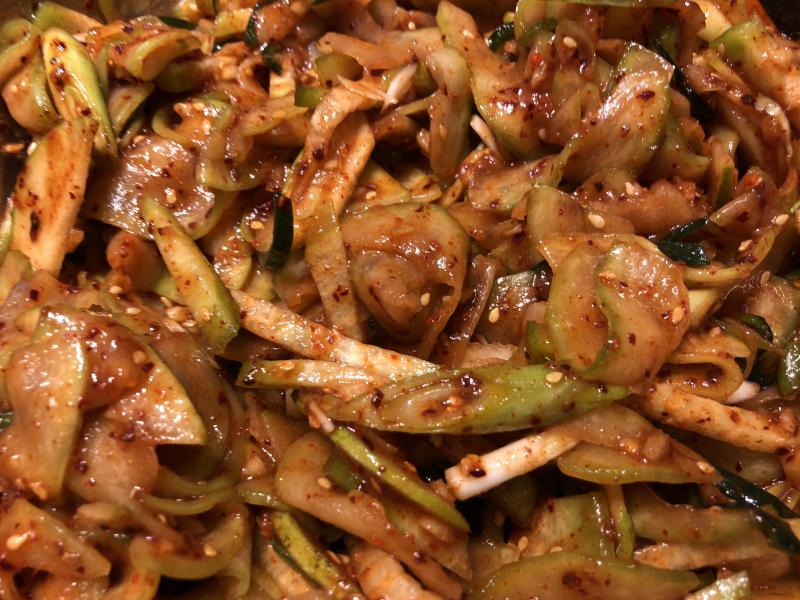 also ich habe das jetzt auch mal versucht: mit etwas koreanischem rettich, frühlingszwiebel, birne aus rudow und grünen gartenchili