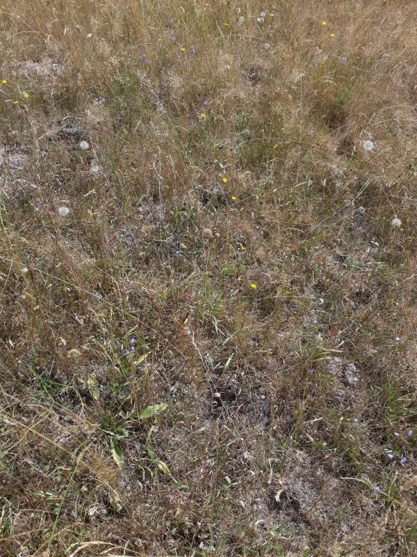 Das sind die Vorzüge der Biotopflächen unterschiedlichster Couleur. Da sind beispielsweise im Normalfall "flotschige" feuchte Flächen dabei. Auch die sind jetzt zwar komplett trocken. Aber dem Grün sieht man die sonst überreichliche Versorgung an. Nur die Magerrasen und die extrem flachgründigen Wiesen... :-X sind ein Totalausfall.