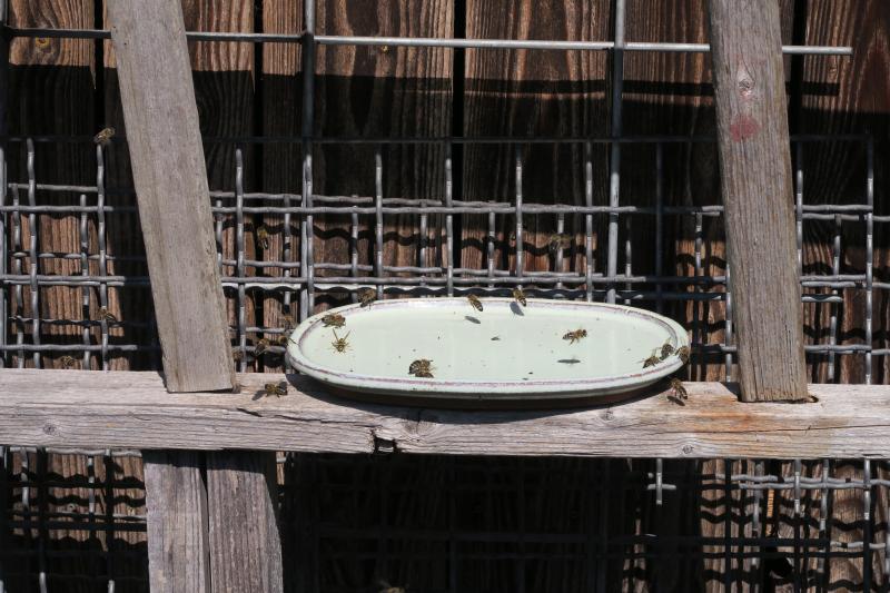 Bei mir sind jetzt nur noch Bienen am Trinken. Die flache Schale ist gut, da kann niemand untergehen.