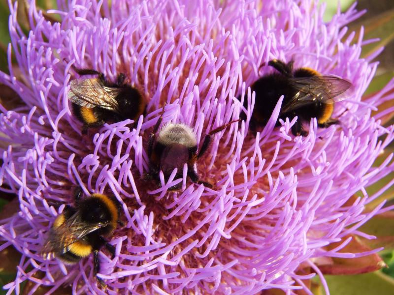 Die Hummeln kugeln sich in der Artischockenblüte,die sehr beliebt ist. :D