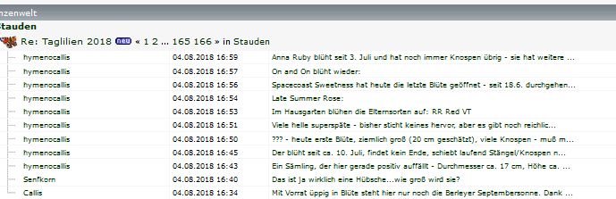 der fluch des im system erhaltenen, später vom usi geänderten nicks, passiert auch bei anderen, die sich nicht ab- und neu mit neuem namen wieder angemeldet haben: gucke mal z.b. nach "henki", "fadenzaubernde" oder "rieke 2". im post und profil steht aber immer der aktuelle name. h. hatte zunächst die falsche gattung gewählt, da "hemerocallis" nicht frei war, das stand auch immer als anmerkung in eigener sache in ihrem profil. irgendwann konnte das geändert werden, aber offenbar nicht in der anmeldedatenbank, oder es wurde da aufwandsminimierend schlicht nicht nachvollzogen.
