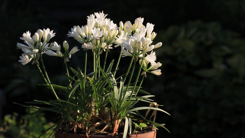Unsere letzten zwei Agapanthus mit mehrfarbigen Blättern blühen dieses Jahr.