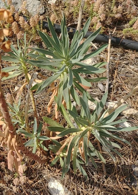 Danke, in diese Richtung (Euphorbia) hatte ich gedacht. Das Bild wurde in der Provence (Alpilles) in einem Kiefernwald gemacht. Dort sah ich Hunderte davon im lichten Schatten von Pinus halepensis