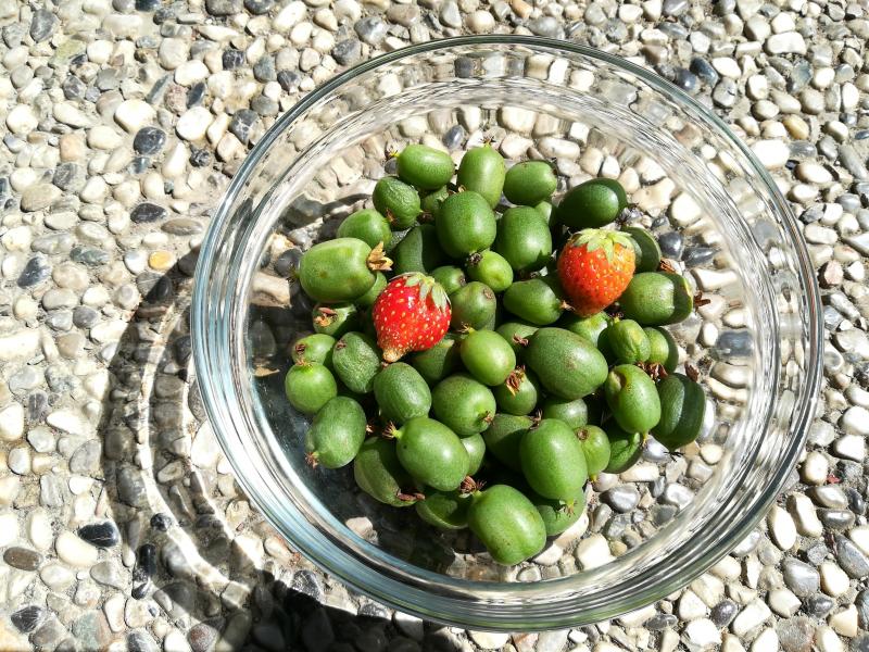 Ganz viele Falläpfel, eine Schüssel Minikiwis, ein paar Brombeeren und zwei Maulbeeren.